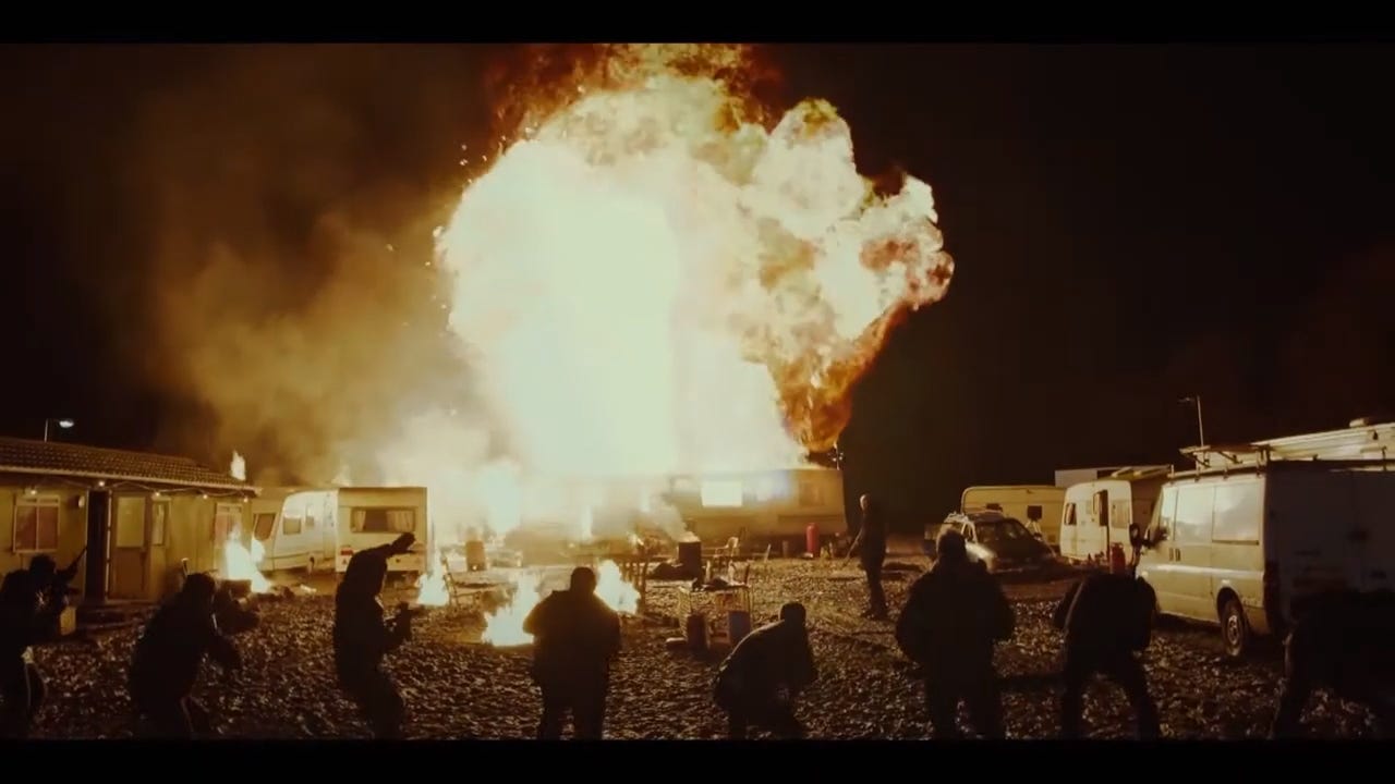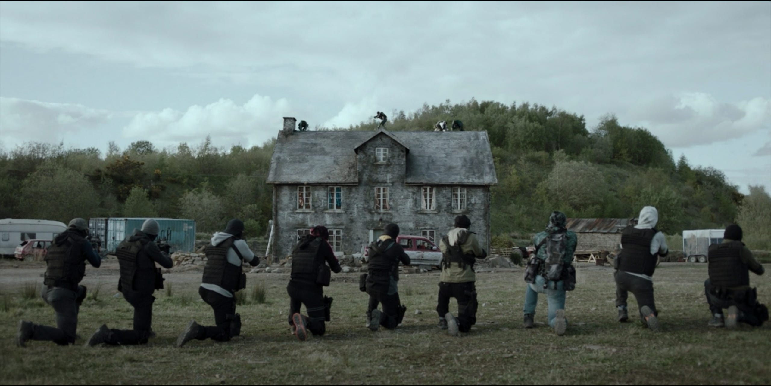 Take for instance the climax of Episode 3, where newly minted godfather Sean Wallace (Joe Cole) decides to raid a local Traveller encampment for their involvement in his father’s death. We initially see the attack unfold from inside one of the caravans, where the group’s leader Kinney Edwards (Mark Lewis Jones) prepares to make himself a cup of tea. Out of darkness walks a perfectly straight line of heavily armed figures.